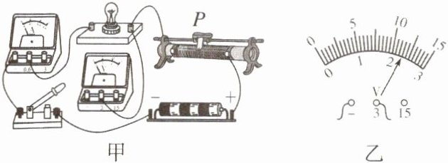 (填“$ R_1 $”或“$ R_2 $”)。(3)移动滑动变阻器的滑片到某一位置,电压表的示数如图乙所示;若要测量小灯泡的额定功率,则滑片向