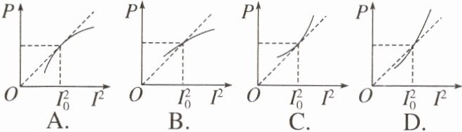 (4)$ I_0 $ 为小灯泡正常发光时的电流,以电流的平方($ I^2 $)为横坐标,以实际功率($ P $)为纵坐标,下列与实验数据最相符的图是