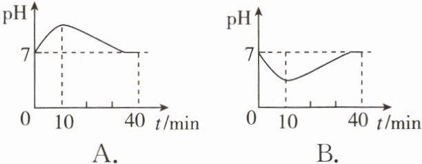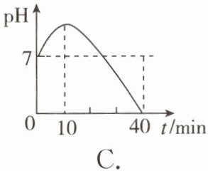7. 人体口腔内唾液的 pH 通常约为 7,在进食过程的最初 10 min,酸性逐渐增强,之后酸性逐渐减弱,至 40 min 趋于正常。下列图像与上述事实最接近的是(