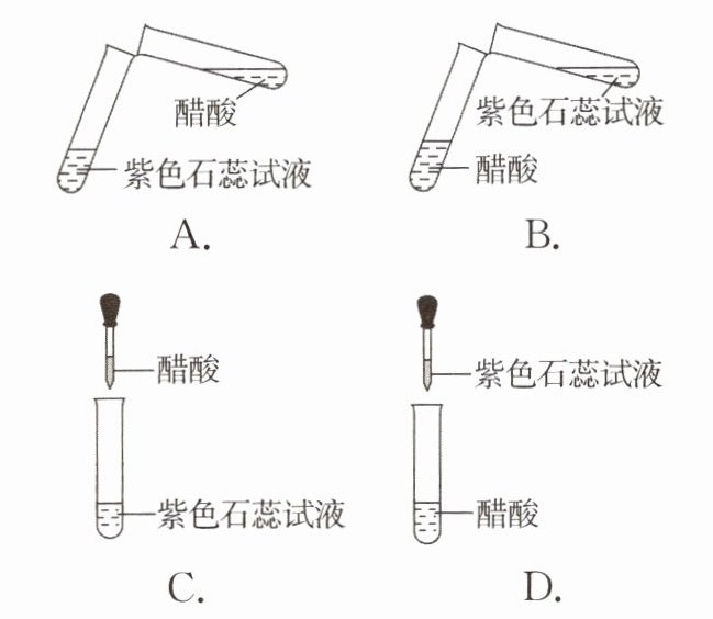 9. 常温下醋酸是一种无色液体。下列是科学小组同学检测醋酸酸碱性的操作,其中正确的是(