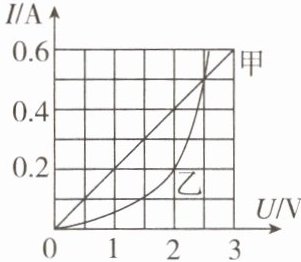 4. 电路元件甲和标有“2.5V 1.25W”字样的元件乙中的电流与其两端电压关系的图像如图所示。若把甲和乙两元件并联后接在电压为2V的电源两端,则电路工作1min消耗的电能是