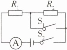 3. 在如图所示的电路中,$R_{2}$的阻值为4欧。闭合$S_{2}$,电流表示数为3安;接着再闭合$S_{1}$时,电流表示数变化了1安。下列说法正确的是(