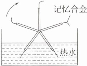 2. 下图为某科技馆的一台“永动机”,其由5根轻杆和转轴构成,轻杆的末端装有形状记忆合金制成的叶片。进入热水因叶片伸展“划水”而转动,离开热水后叶片形状迅速复原。关于该“永动机”的说法正确的是(