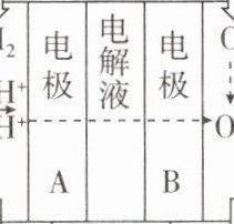 5. 氢能源汽车使用的是氢燃料电池,其工作原理示意图如图所示。电池工作时,在催化剂的作用下,氢原子失去电子形成氢离子,穿过电极 A,通过电解液移动到电极 B 与氧离子结合形成水分子;而电子则从电极 A 经外部电路通过电动机到达电极 B,形成电流。