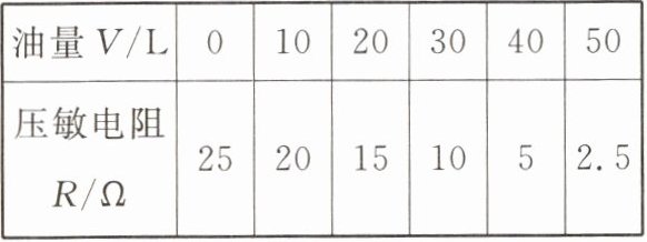 (3)当汽油耗尽时,从表中可知,压敏电阻阻值最大,为R=25 Ω,