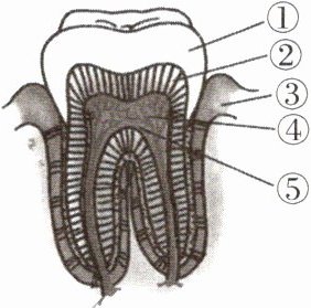 A.牙齿最外层的①起保护牙齿的作用