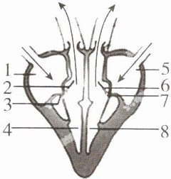 关闭,防止血液倒流。(2)在将血液泵向肺时,心脏的[5]