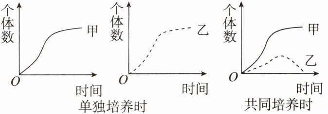 10. 下图表示甲、乙两种草履虫在单独培养时和共同培养时个体数随时间发生变化的情况,下列分析不正确的是(