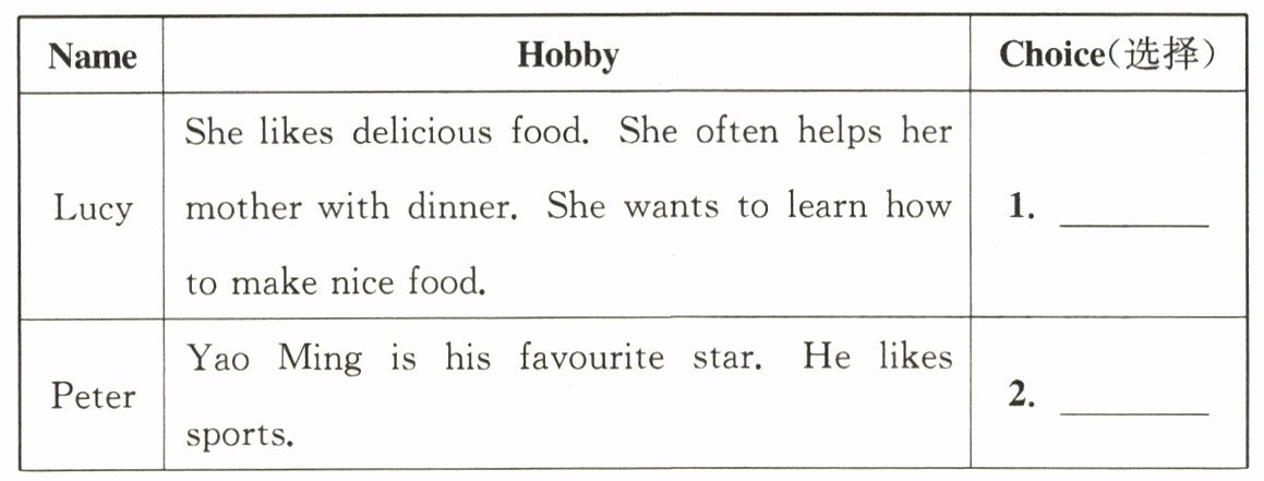 1. 对于Lucy,文中提到她喜欢美味的食物,经常帮妈妈做晚餐,想学习如何制作美味的食物,这与烹饪相关,所以应选择Cooking Club。