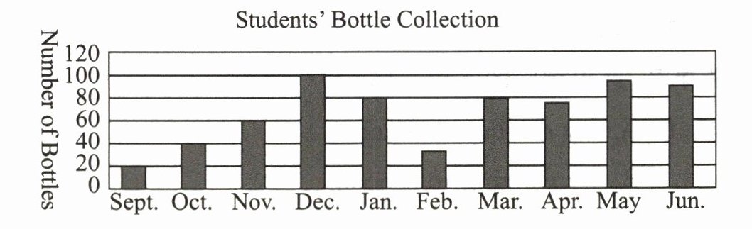 ) 3. From the graph,we know that the students collected the same number of bottles in January and March.(