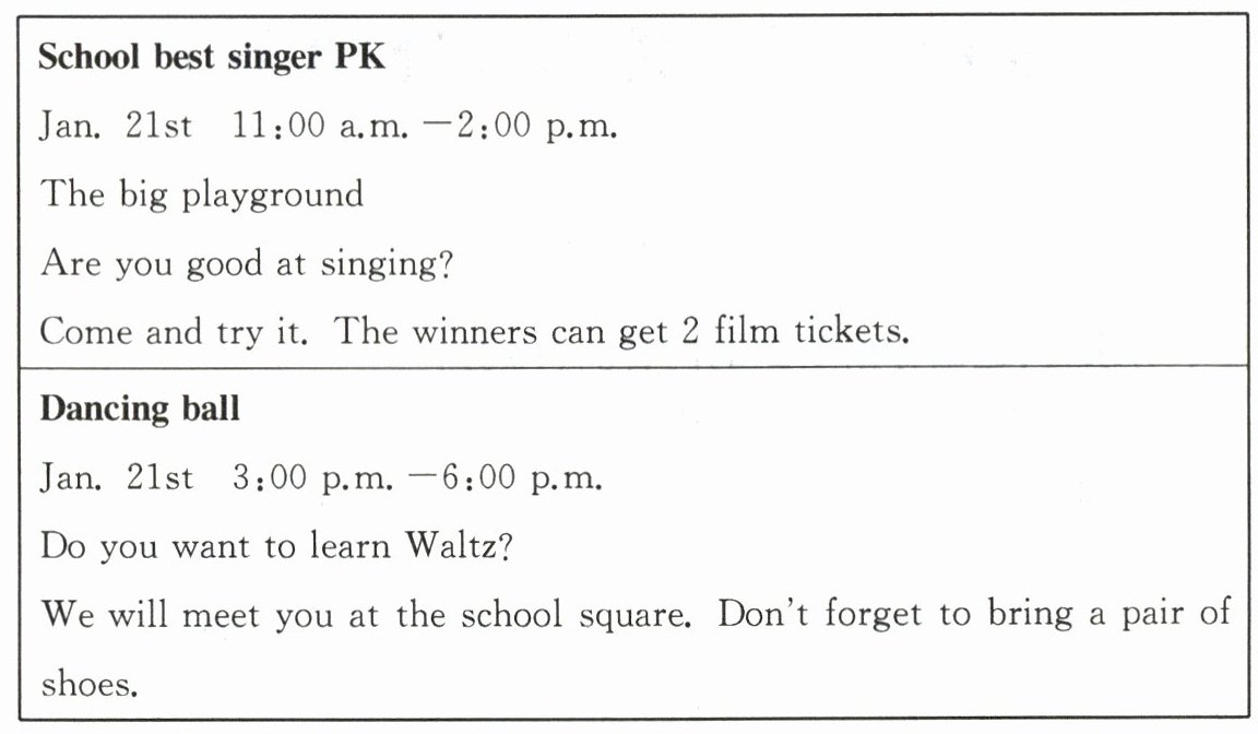 )2. You can join the School best singer PK to get 2 tickets for the museum.(