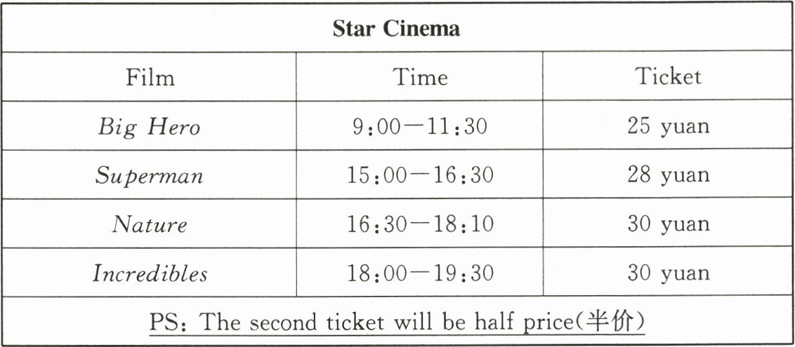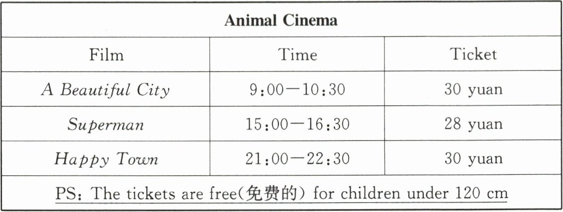 ) 5. If they want to watch Superman,which cinema is cheaper(更便宜)?A. Animal Cinema. B. Star Cinema. C. We don't know.