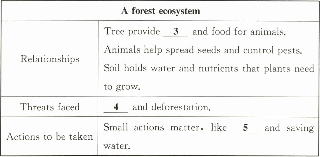 ( ) 5. A. planting trees B. eating less C. planting flowers