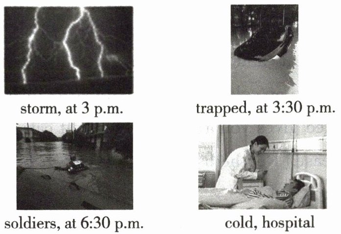 中国广东省遭台风袭击,台风带来了严重的水灾。林先生在水灾中被困于车中,三小时后得救。请你根据下面的图示和提示,完成下面的报道。词数 70 左右,开头已给出,不计入总词数。