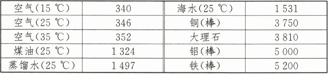 m/s。(4)由表格数据可得出:一般情况下,在气体、固体、液体中声速大小的排列顺序是