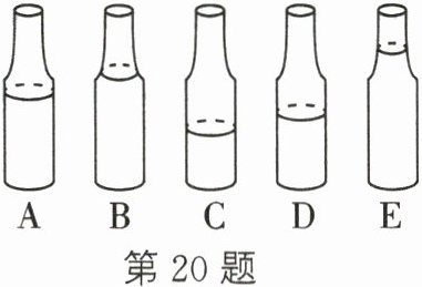 20. 如图所示,班里在举行小型音乐会,小刚同学在5个相同的水瓶中灌入不同高度的水,敲击它们,就可以发出不同音调的声音。但瓶子的顺序排乱了,若按音调由高到低的顺序排列,则正确的瓶子编号顺序是