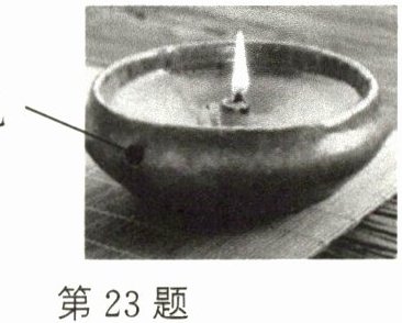 23. 据记载,唐朝时“省油灯”已在四川地区出现。瓷质灯体如碗状,腹部有中空夹层,可通过注水孔向夹层装水,碗内有油和灯芯,如图所示。燃灯前,向注水孔缓慢注入冷水,让