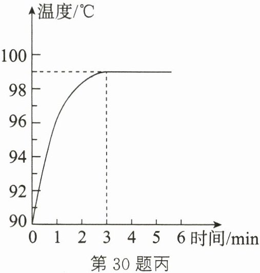 ℃。(2)当水温升高到90 ℃后,每隔30 s记录一次温度计的示数,并将记录的数据绘制成如图丙所示的图像。由图像可知,沸腾时水的温度特点为