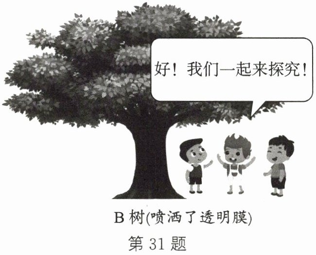 ② 在B树树叶的正反两面全部喷上一层极薄无色无害不溶于水的透明膜,阻止树叶水分蒸发。(透明膜经过一段时间后会自动分解)
