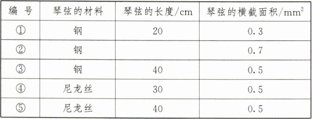 (3)为了验证猜想三,若小明选用编号为①②的琴弦进行实验,则表中缺少的数据应为______。