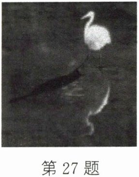 27. 如图所示,一只水鸟站在水中觅食,图中的黑影是由光的