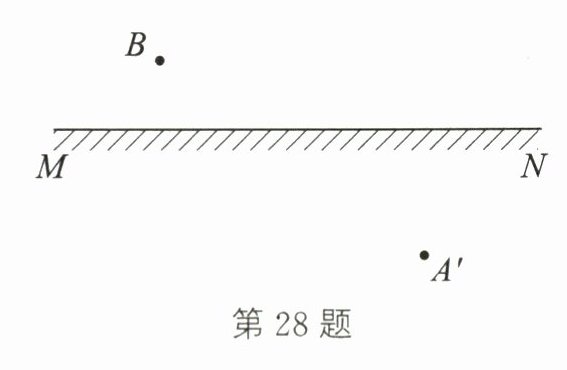 28. 如图所示,A'为处在点B处的人眼通过平面镜MN所看到的点A的像。请根据平面镜成像规律作出其光路图。