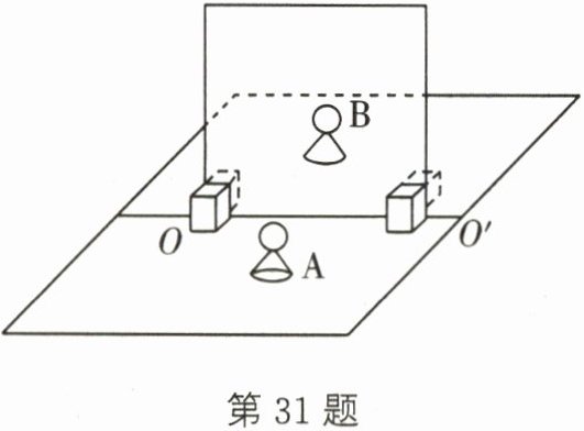 31. (12分)在“探究平面镜成像的特点”的实验中,某同学用茶色玻璃板、两个棋子A和B、刻度尺、白纸、平面镜支架等器材进行实验,如图所示。