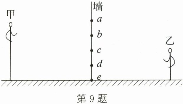9. 如图所示,甲、乙两人分别站立于一面墙的两边,若要在墙上开一个窗使两人彼此都能看到对方的全身,则所需的最小窗的位置应为(