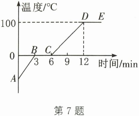 7. 如图所示是对冰加热时其温度随时间变化的图像,由图可知 (