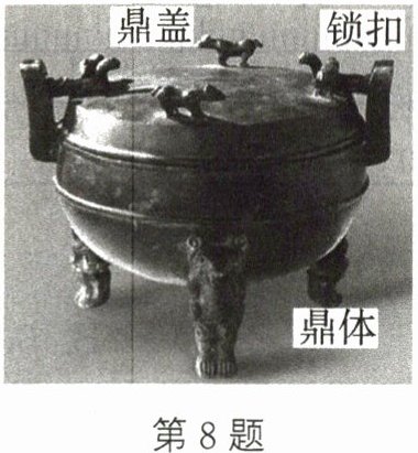 8. 如图所示为西汉时期的熊足青铜鼎。考古学家打造了一个仿制品进行实验:鼎内装较多水,盖上向外凸起的鼎盖,闭合锁扣,鼎下堆放干柴燃烧,当鼎外为 1 个标准大气压时,鼎内的水在 120 ℃沸腾,因此该鼎被誉为“古代高压锅”。下列原因中,不能导致“鼎内的水在 120 ℃沸腾”的是 (