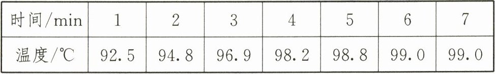 (2)从水温达到 90.0 ℃开始每隔 1 min 记录一次水温,直到水沸腾一段时间后停止加热。数据记录如下表所示。