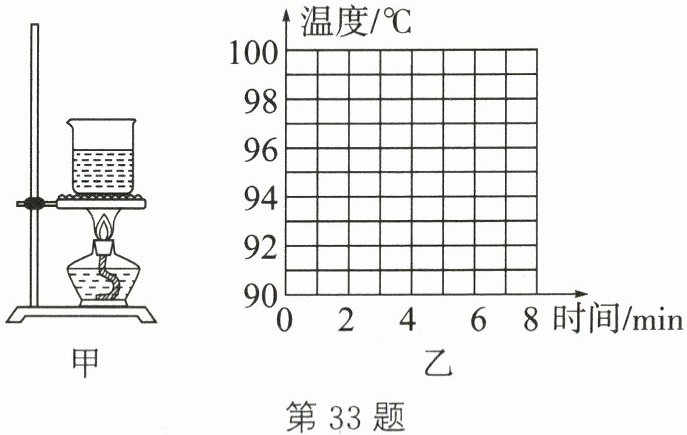 33. (6 分)实验小组用图甲所示装置做“观察水的沸腾”实验,水温使用精密温度计测量(图中未显示)。