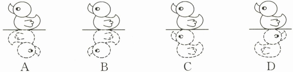 D选项中,像的形状与小鸭不符,不符合平面镜成像特点。