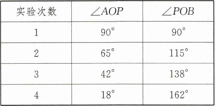 (3)改变入射光的方向,依次记录实验数据如下表所示,分析实验数据可知:入射光线AO逐渐