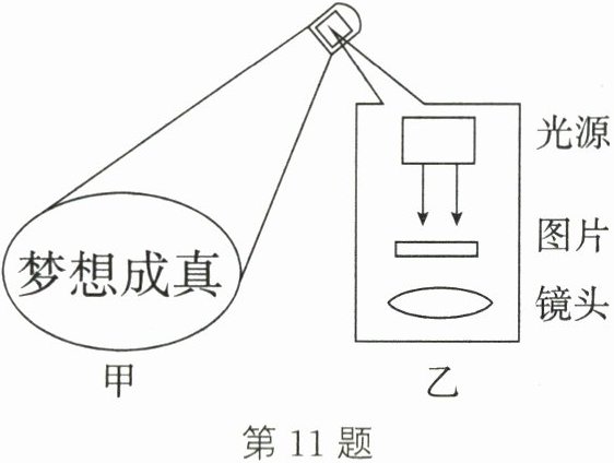 11. 如图甲所示是公共场所的宣传投影灯,装在高处的投影灯照在地面上出现图案,其内部结构如图乙所示。下列说法正确的是(