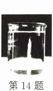 14. 如图所示,在圆柱状的玻璃水杯后面放置一个蜡烛,透过水杯可以观察到蜡烛的像,这是光的