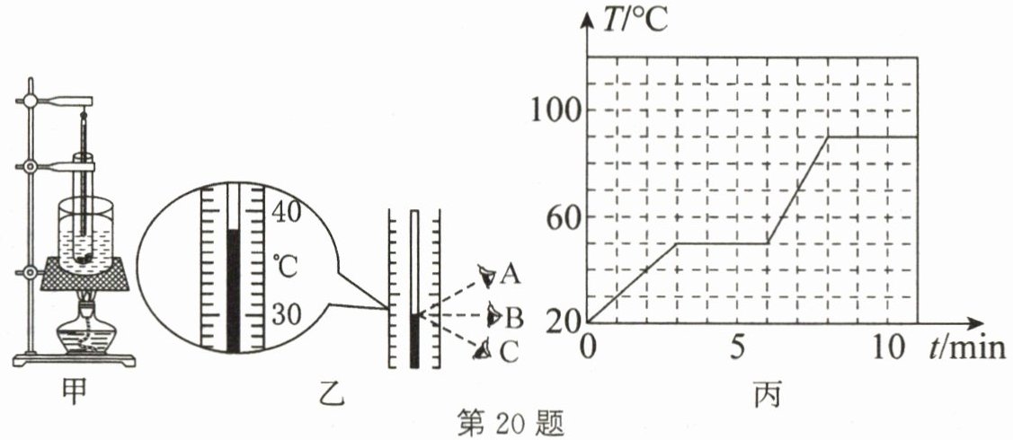 20. (10分)如图甲所示是“探究物质的熔化规律”的实验装置。实验时先将固体物质和温度计分别放入试管内,再放入大烧杯内的水中,观察固体的熔化过程。