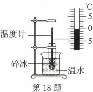 18. 用如图所示的装置探究冰的熔化特点,将装有适量碎冰的试管置于烧杯内的温水中,冰