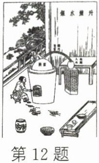 12. 据《天工开物》记载,可从朱砂矿石中提炼水银(液态汞)。如图所示,给密闭锅内的朱砂矿石加热,就会在倒扣的锅壁上布满水银。在倒扣锅壁上形成水银的物态变化是 (
