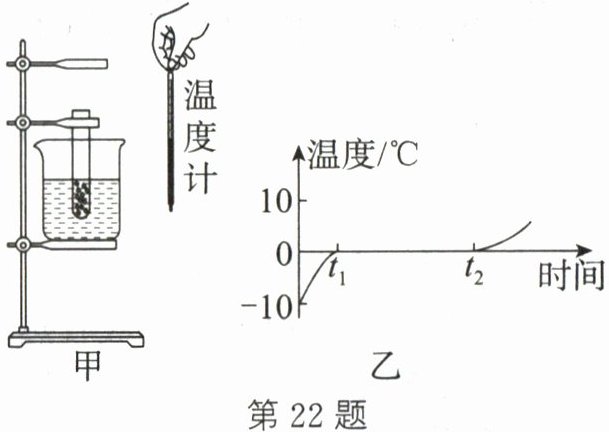 (2)冰熔化时温度随时间变化的图像如图乙所示,在t1到t2时间段,试管中物质的状态为______,此时的温度叫作冰的______。