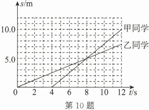 10. 甲、乙两名同学沿平直路面步行,他们行走的路程随时间变化的图像如图所示,下列说法错误的是 (
