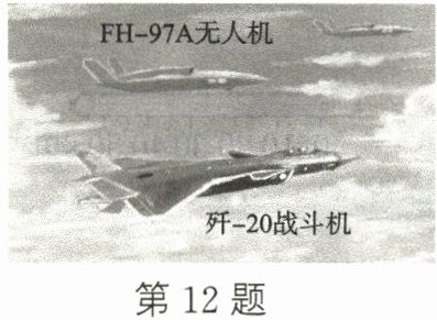12. 将来,依托人工智能技术,我国研发的“忠诚僚机”FH-97A无人机将与有人驾驶的歼-20战斗机“比翼齐飞”(即相对静止),如图所示,若认为FH-97A无人机是静止的,则选取的参照物是 (