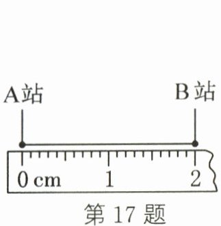 17. 小明想测量某地铁的运行速度。他测得地铁从A站出发到达B站的时间为2 min,在手机中用地图软件截取了一段地图(如图)。用刻度尺测得地图上两站间的距离为