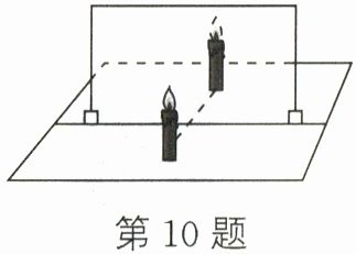 10. 如图所示,在“探究平面镜成像特点”实验中,将蜡烛逐渐远离平面镜,平面镜中的像(