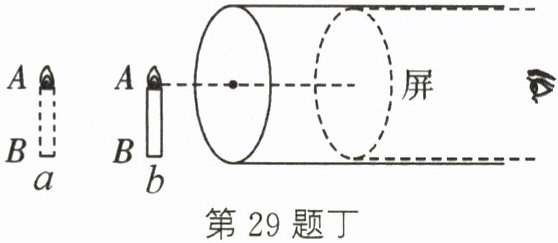 29. (18分)小红用两个硬纸筒制成针孔照相机探究小孔成像,如图甲所示。