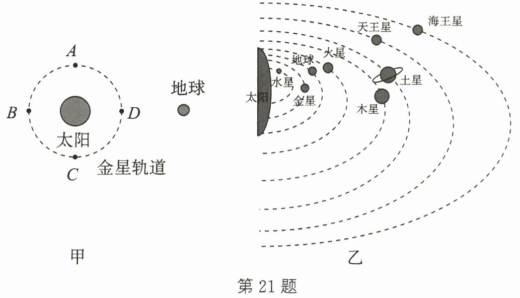 (A/B/C/D)时发生“金星凌日”现象。 (2)图乙为太阳及八大行星示意图。据图分析,你认为在地球上除了可以看到“金星凌日”外,还能看到“