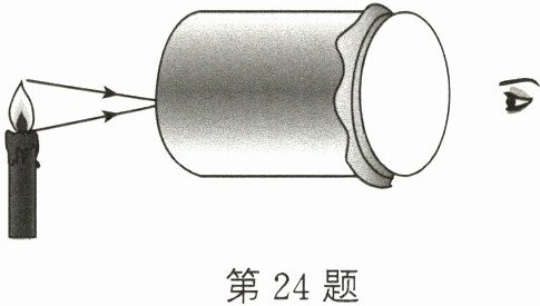 24. 如图所示,小明制成了一个针孔照相机,将点燃的蜡烛置于小孔前的适当位置,观察并研究小孔成像的特点。
