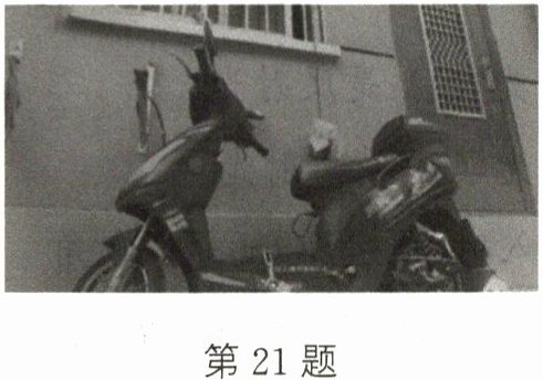 21. 如图所示,有居民将电线插座从窗口悬挂至室外,给电瓶车充电。这种“飞线”充电方式存在安全隐患:① 夜晚气温较