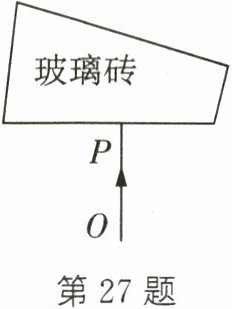 27. 在图中画出垂直于玻璃砖的光线OP经过玻璃砖射出的光路图。