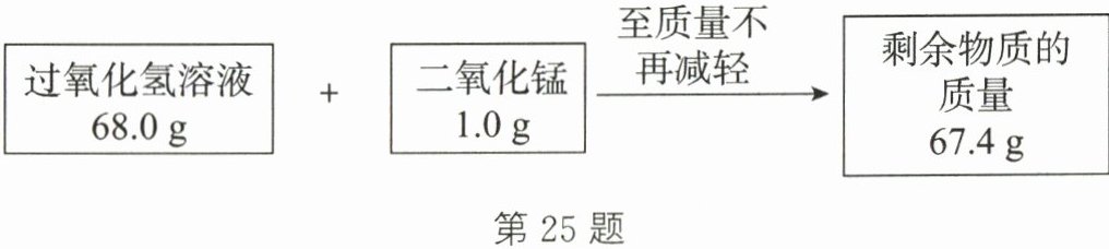 25. (3 分)过氧化氢不稳定会自然分解,久置的过氧化氢溶液,其过氧化氢的质量分数会变小。某兴趣小组为测定实验室中一瓶久置的过氧化氢溶液中过氧化氢的质量分数,进行实验,测得相关数据如图所示:
